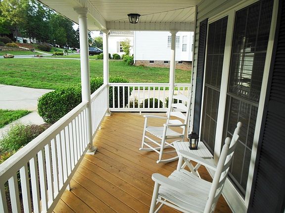 Southern charm best describes this home with its warp around front porch and a paved secret garden path in the backyard. The backyard backs to woods with no other homes visible plus there's a deck too. Another special feature about this home is the large flex room off the kitchen that could be used for anything from an additional family room, playroom, gym. The list of uses is endless.