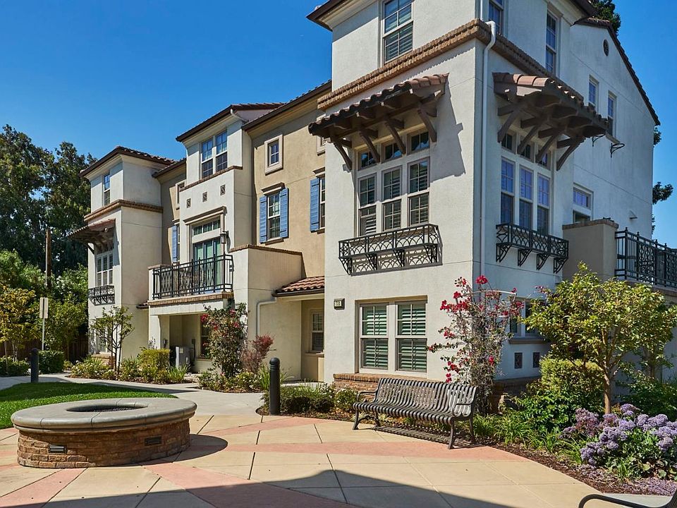 Stylish contemporary sophistication in this highly sought after 6 year old Reflection Way complex. 3 bedrooms each with their own full bath; one bottom floor bedroom, attached 2 car garage. The main floor is an open Great room with high ceilings, containing a central Gourmet Kitchen, with large central island, quartz counters, 6 burner gas cooktop, double door refrigerator/freezer, and walk in pantry. To one side is the large family room, that opens up to a sunny balcony, overlooking the central courtyard and gas firepit, and on the other side is the generously sized dining area. A half bath is conveniently located on the main level; Upstairs are two 'master suites', each with a full bath. A full sized washer and dryer are in a closet in the hall between the 2 bedrooms. This wonderfully built unit has a talk less hot water heater and central vacuum. It is located close to the Permanente Creek Trail, a short distance to Google, and close to shopping, parks, and easy commute.