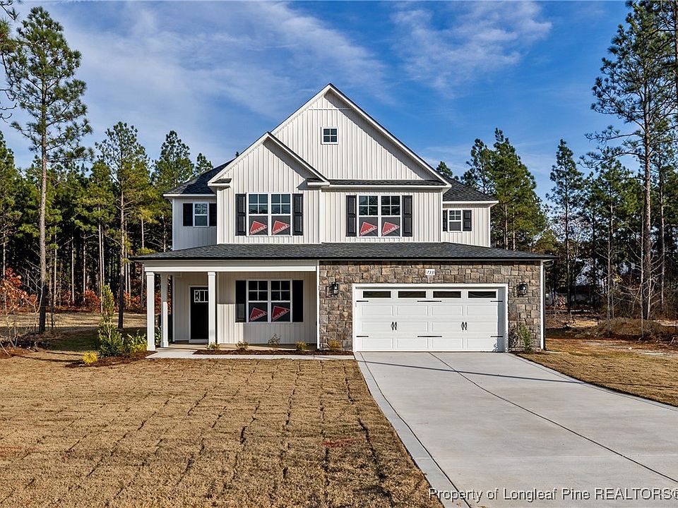 Unbeatable Incentives Complete & Ready to Close! Welcome to an exclusive, newly developed gated community offering expansive lots. Presenting the Carrabelle—a remarkable 5-bedroom, 3-bath home crafted for refined living. Step into the formal dining room, where coffered ceilings & detailed wainscoting exude sophistication. The dining area flows effortlessly into a spacious great room, perfect for hosting and relaxation. The kitchen features abundant counter space, granite countertops, and stainless steel appliances. Adjacent to the kitchen, a versatile room can serve as a bedroom or office, complemented by a full bath. The serene Owner's Suite offers double tray ceilings, a walk-in closet, while the luxurious primary bath includes a double vanity, garden tub, and separate shower, creating a peaceful retreat. Upstairs, the second floor houses a convenient laundry room and three additional bedrooms, two of which share a Jack and Jill bath, ensuring both comfort and practicality for all.