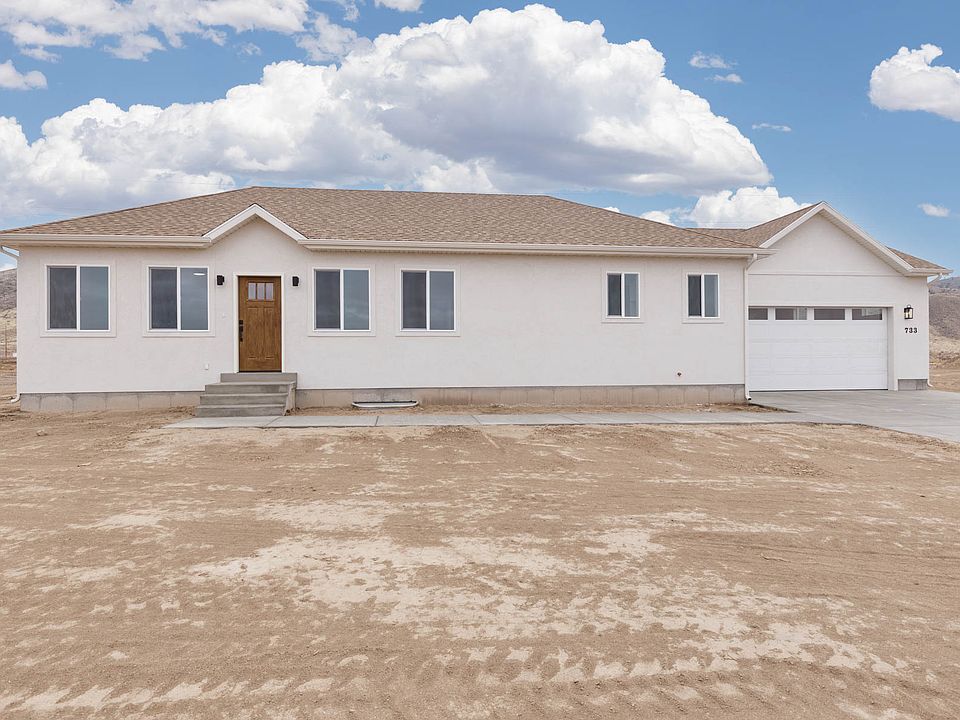 New construction home on 1.41 acres in the desirable Black Knoll Ranches subdivision. This 3-bedroom, 2-bath home offers 1,521 sq ft on the main level with an unfinished basement. The basement is already plumbed for two additional bathrooms and offers the potential to add up to three more bedrooms, allowing for future expansion if desired. Includes a 2-car garage and a functional layout designed for everyday living. Enjoy wide-open mountain and valley views from this scenic foothill setting, just 10 minutes from Richfield. The location offers a great balance of privacy, space, and convenience. Animal lovers and hobby farmers will appreciate the generous animal rights. Under town ordinance, the property allows up to 18 animal units, ideal for horses, cows, goats, chickens, rabbits, or a combination to fit your needs. Located in the newer Black Knoll Ranches Subdivision, this property offers rural living with modern access nearby. Estimated completion Feb 2026! All information provided as a courtesy. Buyer to verify all details.