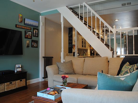 Charming Canton home on quiet street, close to everything! First floor has spacious living room and kitchen w/ SS, tile floor & back-splash. Separate dining room w/ half bath & door to rear deck & patio. Great for entertaining! 2nd floor has 2 bedrooms & full bath w/ separate shower & jetted tub. Rear bedroom has door to roof deck. Partially finished lower level great for office or family room.