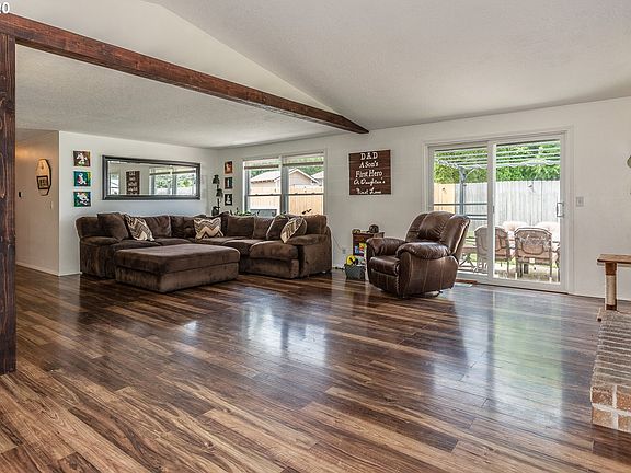 You will find everything you have been looking for and more in this remodeled ranch home. It has 3 bedrooms & 2 full bathrooms. LVT flooring, tiled bathrooms, fresh white kitchen, open great room with custom fireplace. Peaceful location at the end of a culdesac on a huge lot. Two car garage plus room for a trailer or smaller RV on the side of the home. An entertainer's delight, big back yard, large patio with pergola, swim spa, ground-level trampoline, dog-run, shed, & energy-saving solar panels