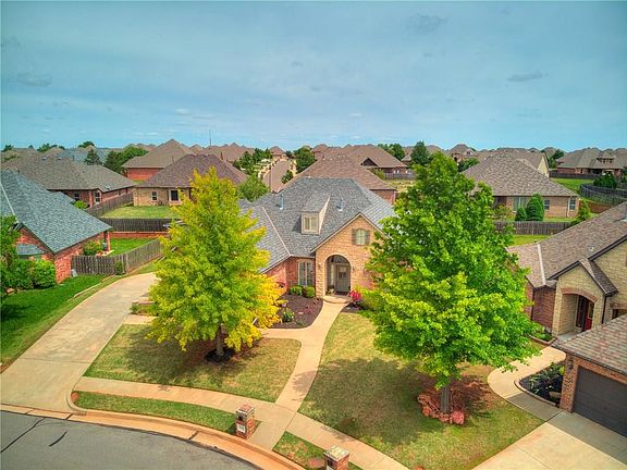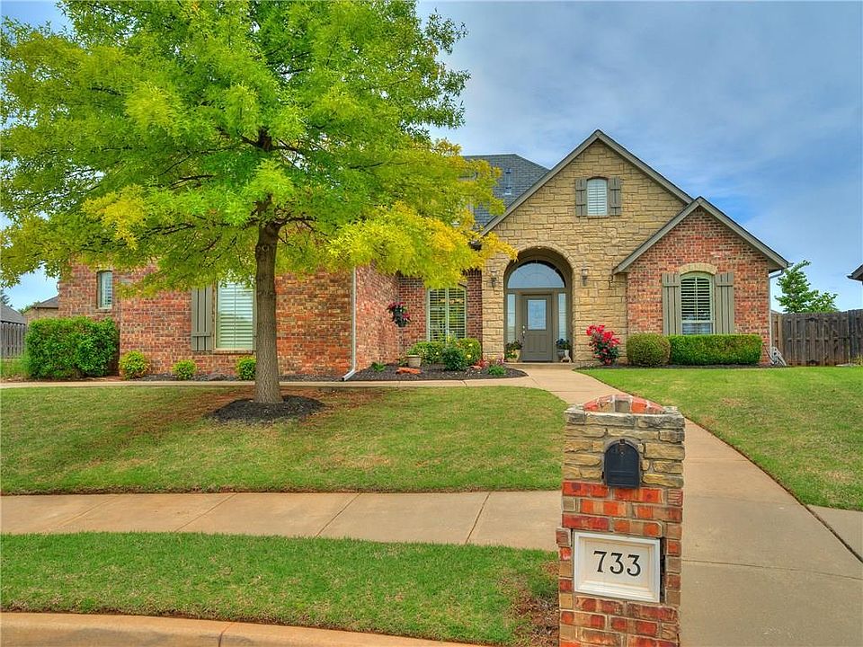 Look forward to coming home to this spacious open floor plan piece of heaven where beauty meets function. Perfect for family gatherings, multi-generational living and entertaining. Kitchen command center opens to the living room's cozy fireplace and floor to ceiling windows. Retreat to the private oversized downstairs master suite, with deep jetted tub and huge walk-in closet. The front bedroom or large upstairs bonus/game room is perfect for an in-home office or extra living space. Two additional bedrooms share a Jack-&-Jill bathroom with a private entrance. The king-sized backyard, three-car garage, in-ground storm shelter, walking trails, fishing ponds, playground, and community pool all within 20 minutes of downtown OKC, make this home one-of-a-kind!