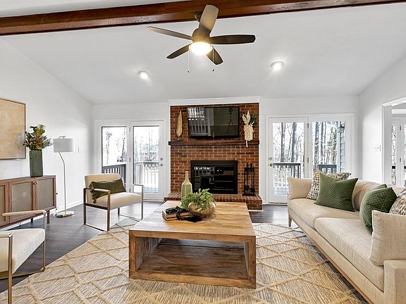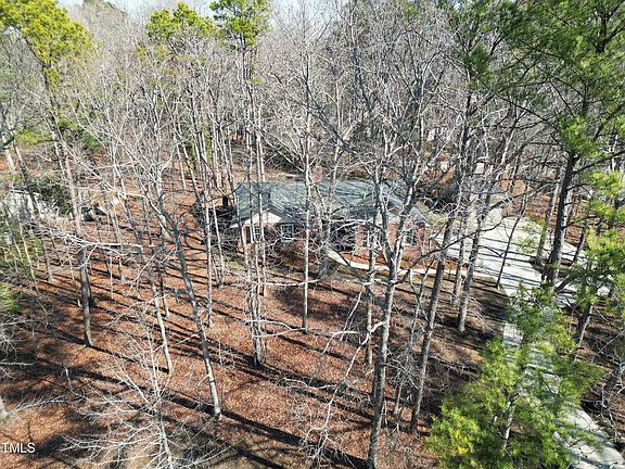 Brick Ranch Home on Nearly an Acre! Tucked away in the sought-after Nottingham Forest community of Raleigh, this 3-bedroom, 2.5-bath single-story home sits on a private 0.89-acre lot, surrounded by mature hardwoods. With no HOA and Wake County-only taxes, this home offers space, privacy, and convenience—all in one. A circular driveway provides ample parking for guests, extra vehicles, or recreational toys. The detached 23x19 garage is perfect for parking, a workshop, or even a home office conversion. Step inside to find a massive vaulted family room featuring a masonry fireplace, a separate dining room adjoining the galley-style kitchen, and a huge bonus room with a wall of built-ins—perfect for a media room, playroom, or hobby space. The updated primary suite is a retreat of its own, boasting a walk-in shower, custom dual vanity, and a large walk-in closet. Additional highlights include stainless steel appliances, granite countertops, LVP, carpet, crown molding and custom tile flooring. The laundry room with a sink adds extra functionality. Outdoor living is just as impressive with a full covered front porch and a large deck overlooking the spacious backyard—ideal for entertaining or relaxing in nature. Recent updates provide peace of mind, including a new roof (2022) and HVAC system (2021). Located close to I-540, parks, shopping, and downtown Raleigh, this home is a quick drive to Costco, the new VA Clinic, White Oak Shopping, and famous Big Ed's Restaurant. A rare find in a prime location—don't miss this one!