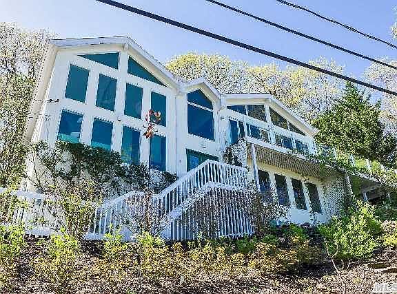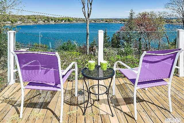 Enchanting Hilltop Contemporary HomeIncredible year round water views from every room in private Mill Neck Estates. Walls of glass overlook scenic Mill Neck Harbor, bathing every room in natural light.Two story foyer with glittering Swarovski Crystal chandelier welcomes you to this romantic retreat. The open layout formal Living Room and Dining Room lend to excellent entertaining while enjoying breathtaking vistas of the Harbor. French doors lead from the Dining Room to a large private patio which is open to the gourmet Kitchen. A delight for gourmands, the Kitchen is equipped with a 6-burner gas range, double wall oven, a Sub Zero refrigerator, and a large center island with seating for five. Granite countertops and a separate wet bar completes the picture. French door sliders lead to an outdoor patio perfect for dining alfresco and barbequing.Your private romantic retreat awaits in the Master Suite on the 2nd floor. A large room in itself with vaulted ceilings, a gas fireplace and private veranda once again reveals the ultimate water views. Sliding glass doors lead directly to an incredible temperature controlled solarium, complete with sound system. The marble Master Bath features an extra large Jacuzzi tub, a separate shower, double sinks, a bidet and radiant heat.