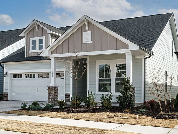 New listing in the 55+ section of Wendell Falls! Wake 1.5 story features open concept with owner's retreat, study and secondary bedroom on the first floor. Second floor is guest ready with a bonus room, bedroom and full bath. Sliding glass doors open out to large covered rear porch.
