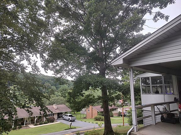 Nice home with acreage in a great location and neighborhood. Easy access to Interstate 26 and 81, airport, shopping, etc. Great school district, Rock Springs area. 2 nice sized bedrooms, living room, kitchen/dining, bath, heat pump, enclosed unheated large sunroom to enjoy morning coffee and views. New updates include: beautiful refinished hardwoods, new electrical wiring, new light fixtures, fresh paint in a pretty neutral color, fenced-in backyard. Washer and dryer hookups downstairs as well as an unfinished bathroom. Attached carport and full basement. All of this is surrounded by over 11 wooded acres and privacy with 1,670 feet of road frontage. Mature trees throughout: Hickory, Poplar, Silver Maple, Cherry, Walnut, etc. A good place to hike and enjoy nature. This home is on public sewer and there are 2 more sewer connections and a fire hydrant. New electric water heater installed Sept 2023. Great opportunity for development.