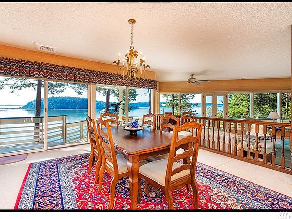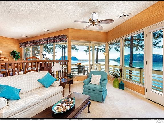 VIEW VIEW VIEW. Bask in the morning sun in your custom designed & built home with an open floor plan, vaulted ceilings, & walls of windows punctuate the breathtaking views allowing natural light to flow through as you watch pleasure yachts leave for trips to the beautiful San Juan Islands. Home features an open floor plan, spacious kitchen, one level living, sun room, shop, office with a fireplace Amenities include 2-swimming pools, tennis courts, golf, club house, 2-private beaches, boat ramp.