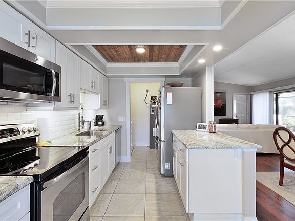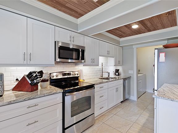 Welcome to your dream retreat tucked away in Village 1. This custom condo offers an inviting blend of luxury and comfort. Featuring a stunning kitchen w/coffered ceiling, sleek granite counters, shaker style cabinetry and a wine bar offers a true culinary experience. The living room is enhanced w/luxury flooring and wood burning fireplace. Retreat to the master bedroom w/custom walk-in closet, shaker style cabinets w/quartz counter tops and walk in shower. Unwind on the expansive screened porch with tropical views. Do not miss out on the opportunity to make this slice of paradise your own.
