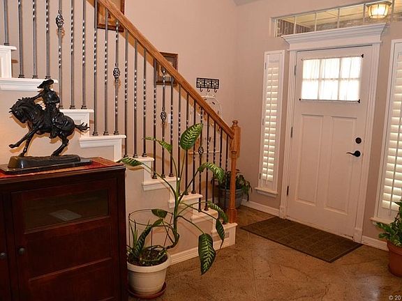 Move in ready on a quiet street. Open concept designed w/ flex space. Two master suites, one up, one down.Faux granite floors,plantation shutters,built-in storage. Bthrms w/faux textured paint.Landscaped w/water feature backing to wooded area for privacy.