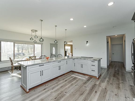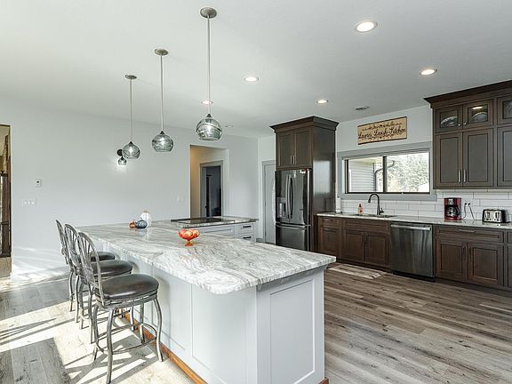 Discover the perfect blend of functionality and workspace with this extraordinary 5.42 acre property. Enjoy the completely remodeled kitchen and additional updates across the main floor. The home boasts 5 bedrooms, 3 full baths, and spans 4931 finished square feet, complemented by an attached 2 car heated garage with epoxy floor. Just a short walk from your residence is a 6000 sq ft shop, complete with heated floors, a lift, and 14x14 drive thru garage doors, to satisfy all your work and storage requirements. Inside the home you will find the beautifully updated eat-in kitchen with stainless appliances, custom cabinetry, and granite counter tops. Large center island with cooktop offers ample seating. Large family room with floor-to-ceiling stone fireplace. The owner's suite is complete with an updated en-suite bathroom featuring a walk-in shower, freestanding tub, and plenty of cabinetry. The lower level is finished and ready for your personal touches. This is more than just a home; it’s a lifestyle. Don’t miss out on this one-of-a-kind property.