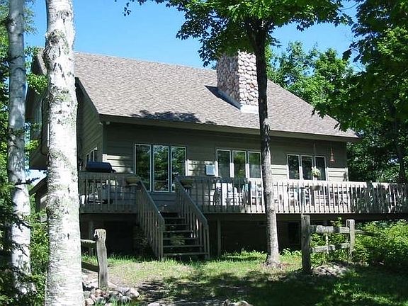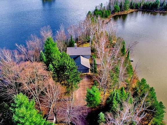 Ultimate privacy and scenic views await those who visit this peninsula property on the Presque Isle Chain with over 1000' water frontage! There you will find a beautiful cedar-sided 3BR, 2BA home with panoramic views from every window, a huge pole building with upstairs storage space and multiple piers for lots of waterfront activities. This property also features an irreplaceable channel that has opened up the smaller Jamie Lake to the rest of the Presque Isle Chain, making an incredibly unique place to swim and to store boats. Inside the home you'll notice the massive 2-story fieldstone fireplace with cathedral ceilings and fantastic hardwood floors. There's also a large deck for grilling and laying out in the sun, and it is zoned recreational to allow weekly rentals. This property can be purchased with or without the acreage surrounding Jamie Lake as well, so don't miss out on this one of a kind property!