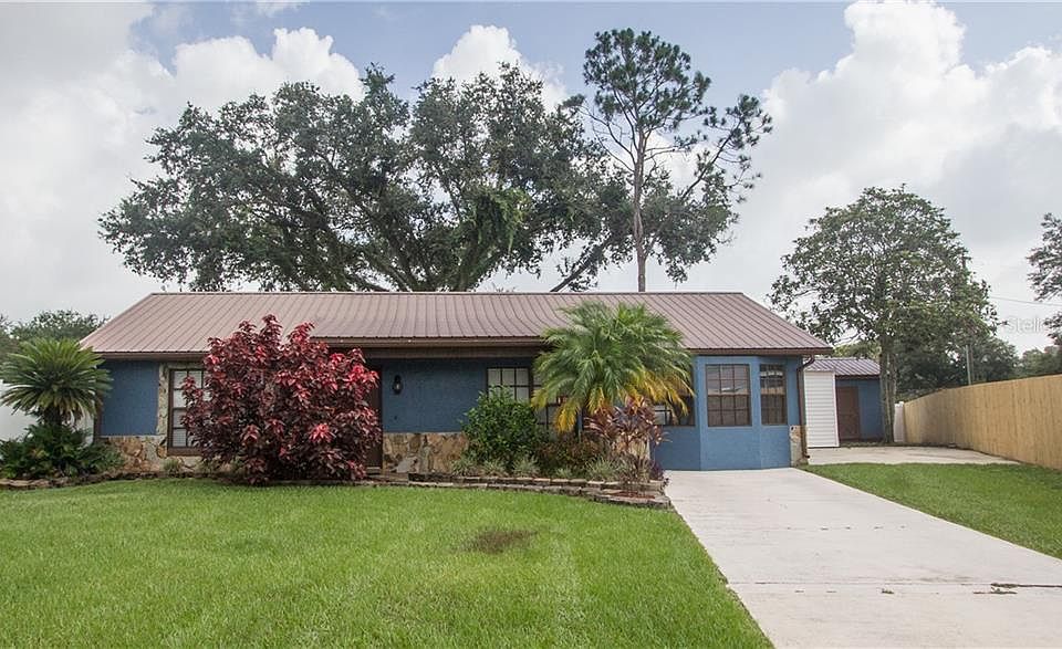 A hidden gem in Zephyrhills! Check out this move-in condition 4 bed, 2 bath pool home at the end of a quiet cul-de-sac in Alpha Village. The kitchen boasts a breakfast bar, upgraded lighting AND a full wall pantry. All the big stuff is done too! Metal roof (6 yrs), AC & fence are less than 1 year old. Added blown in insulation helps keep your electric bills low. This home has split plan with master suite on one side and guest beds & baths on the other. Like storage? Not only is there one large storage area, but a storage outbuilding too! A sports pool (deepest in the middle) in a screened enclosure with a shaded sitting area. Oversized keystone shaped lot with vinyl privacy fence. This home has so much to offer. It could be your oasis in Zephyrhills! Call today for your private viewing and check out the virtual tour using Streetview technology.