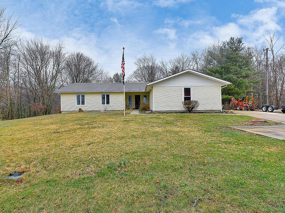 Super rare find ranch on 1.72 acres with FULL finished walkout basement and 2 fireplaces. SQ FOOTAGE IS INCORRECT FROM AUDITOR! TOTAL SQ FOOTAGE IS 3450. 4 Bedrooms and functional 5th bedroom (or hobby rm/office) in LL. Gorgeous quaint peaceful setting a distance from road, backs to woods. You'll love the enormous wrap around deck to enjoy the outdoors. Huge kitchen with ample cabinet and counter space. The basement features a bar, theater room, and 2 other bedrooms, plus a wood-burning stove to enjoy the big games. There is a very hidden unique storage area behind the LL storage system (see pics) that pulls out. Tons of storage space throughout entire home. Home does have newer windows. Take advantage of this one. Agents see A2A remarks to share w clients. 24 Hr notice please