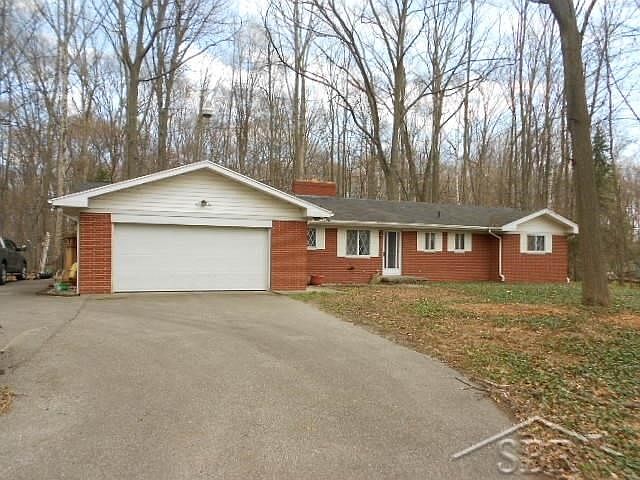Custom built three bedroom ranch featuring hardwood floors, fireplace in the living room and basement, large bedrooms, bright kitchen, large family room, full basement, 32x24 heated pole barn, 16x12 shed, all on 3 wooded acres.