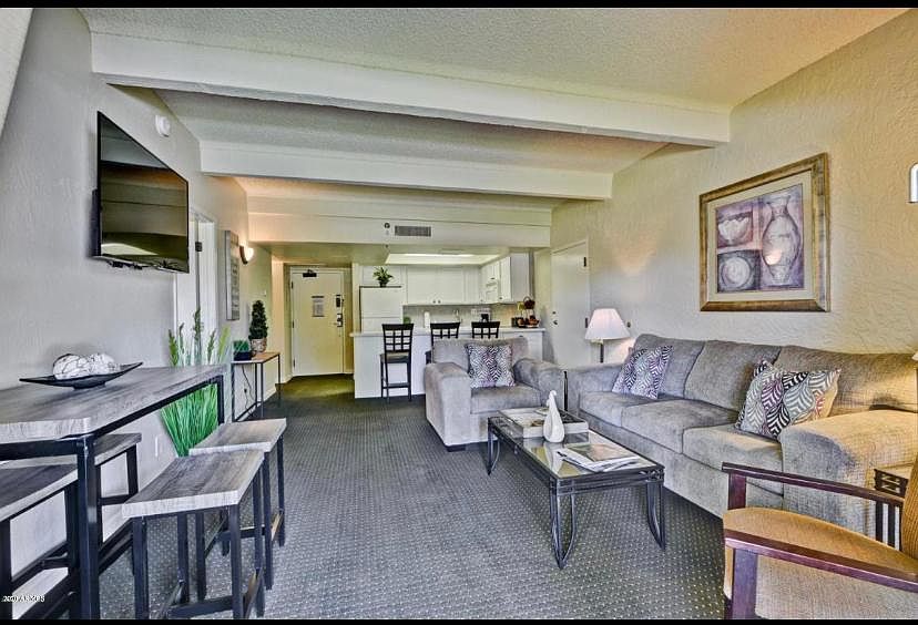 Furnished 1-bed, 1-bath condo in the heart of Scottsdale, steps from the Talking Stick Entertainment District and walking to Rockies/Diamondbacks Spring Training Stadium. Enjoy an oversized balcony, large living room, and eat-in kitchen. The spacious walk-in closet and king bed offer comfort and convenience. Covered parking, year-round heated pool, and hot tub provide added luxury. Perfect for short-term stays or longer getaways, this condo combines comfort, style, and prime location in one of Scottsdale's most vibrant areas. Don't miss out on this Scottsdale gem! The HOA does not allow pets. High speed Wifi and cable included! $1750 is for long term. If interested in shorter stays we can accomodate monthly or even weekly rentals! Call Gabriel for more information! Unit has been updated with LVP wood look floors. There is no carpet. HOA does not allow pets Gabriel Suarez REALTOR P.J. Hussey & Associates, Inc 1 week to 1 year rentals! Fully furnished. Cable and Wifi included
