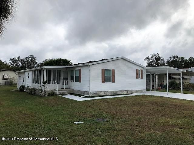Top of the line Palm Harbor manufactured home with all remaining high quality furniture included! Unique 3/2/1 plus golf cart garage has glass enclosed porch plus screened lanai. Plaster walls with rounded corners, beautiful bamboo floors, nice ceiling fans. Master has solid cherry Ethan Allen furniture that stays, thick padding under newer carpet, and 2 walk in closets. Family room, dining room and living rooms. Remodeled kitchen has soft close drawers, loads of cabinets and pantry closet. 13 seer Trane A/C new in '11, dimensional roof new in '14. Garage is L-shaped, has 2nd refrigerator & workshop area. Golf cart garage also has storage space. Laundry room inside, with sink, washer & dryer stay. Your chance to own one of the nicest homes in all of High Point 55+ golf course community!
