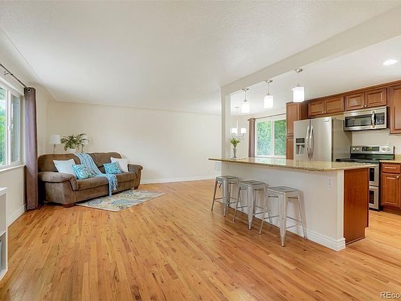 Are you looking for a newly updated home with charm? Look no further! This beautifully remodeled house has it all! Walk in to the lovely open concept living/dining/kitchen with updated wood flooring, new windows, fresh interior paint and updated light fixtures. Kitchen is spacious and fit for entertaining with eat-in kitchen island, granite countertops, new stainless steel appliances including double oven and plenty of storage with updated cabinets. The renovated primary bedroom features new carpet, large window and primary 4 piece bath with granite, dual vanities. Upstairs, the new carpet and fresh paint continue into two secondary bedrooms and a remodeled full bath. The basement features an additional FULL kitchen and bedroom room that could be used as a studio apartment fit for in-laws or long-term guests. The private backyard features a patio that could house multiple entertainment areas, mature trees, new sod and 3 car garage with workshop. Property backs to a greenbelt. Other updates include roof (2017), windows (2018), exterior paint (2018), additional insulation blown in and solar powered automated gate for RV slab/garage access. Ideal location off Wadsworth near biking trails, restaurants and amazing parks. PLUS close proximity to Sloans Lake, Edgewater beer gardens, LODO/LOHI and downtown Denver! Also close to light rail station and easy access to I-70 to get to the mountains in no time!