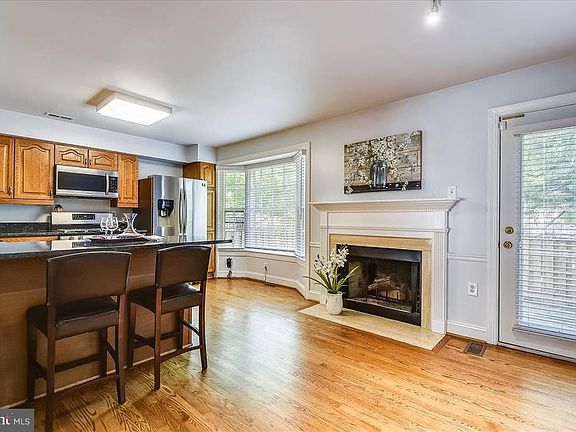 Well built Carr Executive series home with luxury moldings and quiet masonry party walls on both sides! Beautifully maintained and great location facing trees and backing to tot lot & open common area. Fully fenced rear yard with low maintenance slate patio. This home features 2 fireplaces, gleaming hardwood floors on the dining room and kitchen level. Extra large Master bedroom with high vaulted ceiling and 3 closets! Light & Bright master bath with soaking tub, vaulted ceilings and skylight. Many recent upgrades include New Granite counters with breakfast bar, stainless steel GAS appliances, Lighting fixtures, fresh paint, new carpet in Living room. Home has upgraded HVAC system 2013, Hot Water heater 2015 and replumbed PEX water supply lines. Full bath in basement with large rec room, separate laundry room and extra storage room plus garage shelving. Plenty of guest parking in front of the home. Very easy access to Metro, Bus line , 495 and lots of shopping options!Move in ready for you now, see it before it's ....