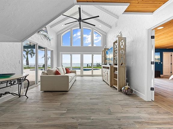 Discover Your Sarasota Waterfront Paradise! Imagine waking up to the gentle sounds of Sarasota Bay, where your private beach meets 100 feet of pristine shoreline. This enchanting 5-bedroom, 4-full, and 2-half-bath residence masterfully combines timeless charm with modern comforts, creating the ultimate waterfront haven. For those who cherish life on the water, this property is unparalleled. Nestled on nearly an acre, it boasts an expansive dock equipped with two boat lifts (24,000 lbs and 14,000 lbs capacities), ensuring your vessels are always ready for sun-soaked adventures on Sarasota Bay and beyond. Step inside to be greeted by vaulted Cypress ceilings and panoramic windows that bathe the home in natural light, offering uninterrupted bay vistas. The first-floor primary suite is a serene retreat, allowing you to awaken to mesmerizing water views. It features a spacious walk-in closet and a luxurious bath with an infinity soaking tub. An additional guest suite and full bath on the main level ensure comfort and privacy for visitors. Whether hosting intimate dinners or lively celebrations, the home’s thoughtfully designed layout caters to every occasion. Enjoy meals in the formal dining area, relax in the cozy family room, or prepare culinary delights in the well-appointed kitchen with a breakfast bar. The separate living room offers sweeping Sarasota Bay views, perfect for unwinding as boats drift by. The expansive travertine pool deck invites you to indulge in Florida’s perpetual sunshine. An open-air pool and spa set the stage for memorable day-to-night entertainment. Upstairs, three additional bedrooms, a loft area, two full baths, and a half bath provide generous space for family and guests, ensuring everyone has their own private sanctuary. Located in the Whitfield Estates neighborhood, residents have the unique opportunity to enjoy dining at the nearby Sara Bay Country Club. For an optional annual HOA fee of just $35, you can enjoy a culinary membership that grants full access to the clubhouse for dining and social events (golf privileges not included). Combining classic Florida allure with contemporary updates, this property invites you to experience the relaxed waterfront lifestyle that defines Sarasota. Don’t miss the chance to make this exceptional residence your own.
