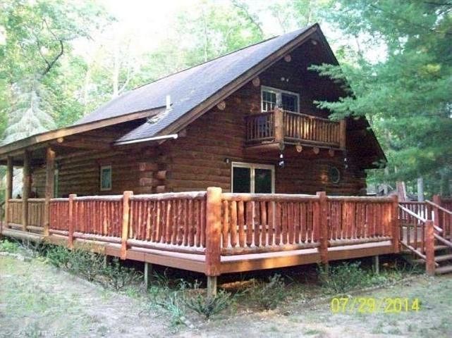 Log home beauty near Long Lake. High quality authentic Amish built home with superior features, including cathedral/vaulted ceiling, log railing expansive deck along sides and back of home. Lower level highlights, true log look and feel with natural log interior walls, vaulted ceilings, and staircase & railings. Living room with wood fireplace, first floor bath with whirlpool tub. Ceramic tile kitchen showcases solid wood cabinets, large pantry and additional room with storage. Slider off kitchen to huge decks with view of woods. Lower level features knotty tongue & groove pine walls. 2 bedrooms with walk in closets, large family room, large full bath. Upper level has natural log staircase which leads you to a loft where you will find knotty pine flooring. Also has a outside deck. Home is not far from Ludington and Lake Michigan without the high taxes of those places. call now for showing