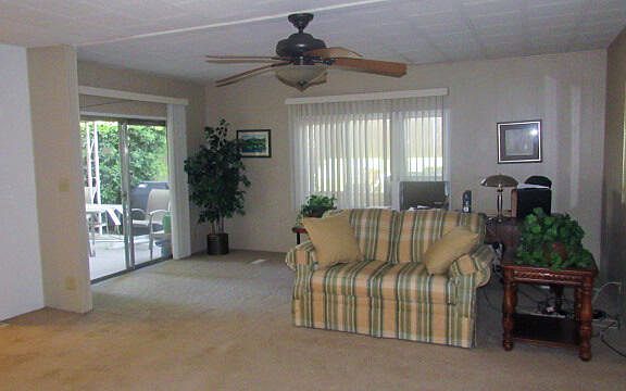 Priced to Sell!!!!!Spacious home with 1680 sq. ft. close to the clubhouse. Enter into the home off the front patio into the bright living room dining room area. The windows are dual pane to keep the home cooler in the summer and warmer in the winter. Going back into the kitchen area there is seating at the breakfast bar and a large family room area with a sliding door out to the front patio. The large master suite features a walk-in closet. The guest bedroom has an adjoining bath for convenience for your guests. Covered parking is in the attached carport which has a storage shed. This home is a must see and the owner to ready to sell at this great low Price!