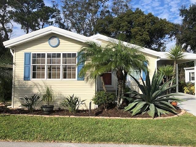 Welcome to this beautiful home in the desirable premier community of Hacienda Village 55+ gated park located in New Port Richey, Florida. This amazing 2004 Jacobson home is quality built with drywall will be sure to please. 1432 SF of living space, lovely open floor plan with smooth cathedral ceilings and french doors to the bright bonus room. You will also have an inside laundry room. Living room 15 x 19 this living room is perfect for large furniture and has laminate flooring. Kitchen 10 x 12 A fantastic chef's kitchen with stainless steel appliances including a 4 door dream refrigerator, white cabinets and plenty of countertop space. The kitchen has tile flooring Dining 10 x 12 The dining area is very spacious, open and bright...perfect for those family gatherings. Master bedroom 12 x 14 You will have enough space in this large master for a king size bed. Mirrored wardrobe for extra storage and a wonderful walk in closet. New sliding barn door that slides to the master bath. master bath 8 x 9 The master bath has a very nice vanity with lots of counter space, new sink and toilet, large walk in shower with bench and a linen closet with lots of shelves. Guest room 12 x 12 Your guest will love this roomy guest room. Guest bath 8 x 6 The bath has new sink and toilet and beautiful laminate flooring. The laundry room is inside with storage The carport is 12 x 26 great space for 2 cars and a golf cart and even has cathedral ceiling. There is a 10 x 12 workshop with a lot of extra space The new roof 2021 comes with warranty and is passed on to the new owner. You have a gorgeous yard front and back with very nice landscaping, palm trees, lots of greenery, decorative rocks and stones to complete the look. TO MAKE AN APPOINTMENT CALL ALAN All listing information is deemed reliable but not guaranteed and should be independently verified through personal inspection by appropriate professionals. American Mobile Home Sales of Tampa Bay Inc. cannot guarantee or warrant the accuracy of this information, measurements or condition of this property. Measurements are approximate. The buyer assumes full responsibility for obtaining all current rates of lot rent, fees, or pass-on costs associated with the community, park, or home from the community/park manager. American Mobile Home Sales of Tampa Bay Inc. is not responsible for quoting of said fees.