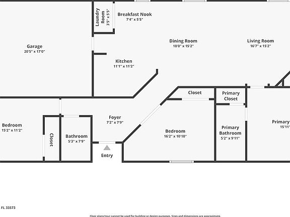 This three-bedroom, two-bathroom rental home in Ruskin, FL features an attached garage and stone accents on the exterior. Admire the large living area with laminate flooring, a sliding door to the backyard, and an open layout that flows into the dining area. A lighted ceiling fan hangs from the high ceiling. Prepare your favorite meals while entertaining guests in the eat-in kitchen that features a spacious pantry, stainless steel appliances, and quartz countertops. The breakfast bar is convenient for quick dining. Carpeted flooring and a ceiling fan in the primary bedroom provide a relaxing night's sleep, and you'll find an en suite with a walk-in shower. The covered patio is great for some fresh air. Call to tour this home soon.