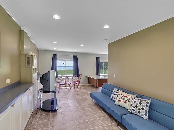 One of the best locations on Mullett Lake, where you can be close to town, have sunset and expansive lake views, and enjoy great frontage. 100' of incredible Mullett Lake frontage awaits your vision and is ready for a lifetime of family memories. You can wade forever in the clear waters on the hard-packed sand bottom. Paddleboard or boat the waters of northern Mullett, or explore the inland waterway. The current structure has updated electrical, plumbing, windows, appliances, fixtures, and flooring, and with over an acre of land there is plenty of space to expand or do your own thing. It boasts a 20x24 garage to store your toys and the dock (included). The location is easy to get to and close to so much of Northern Michigan's amenities--just 5 miles from the burgeoning shopping and dining scene in Cheboygan, only a couple minutes from the iconic Hackmatack Inn, and only about 20 miles from the Pellston airport and about 10 miles from I-75. Schedule your tour today and start make memories on the lake!
