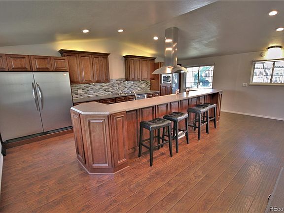 Lot\'s of updates in this tastefully remodeled home with an open floor plan. The kitchen has a huge island that can comfortably seat 6. Other features are a vaulted ceiling, recessed lighting, custom glass tile back splash, pantry, cabinets with soft close drawers and rollout shelves, commercial size stainless refrigerator and freezer, drop in stainless range and contemporary stainless range hood. Large Master Suite has 3/4 bath and His and Hers walk in closets. The living area has vaulted a vaulted ceiling and opens to a covered patio in the back yard. Finished basement has conforming bedroom and large flex space. Roof is 2 years old. 90\% efficient furnace is 3 years old. No neighbor behind the property. Gravel RV parking pad. 220 Electricity in garage. Faversham park is short walk away. Buyers will love this Arvada gem!