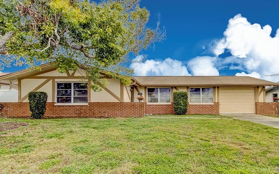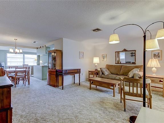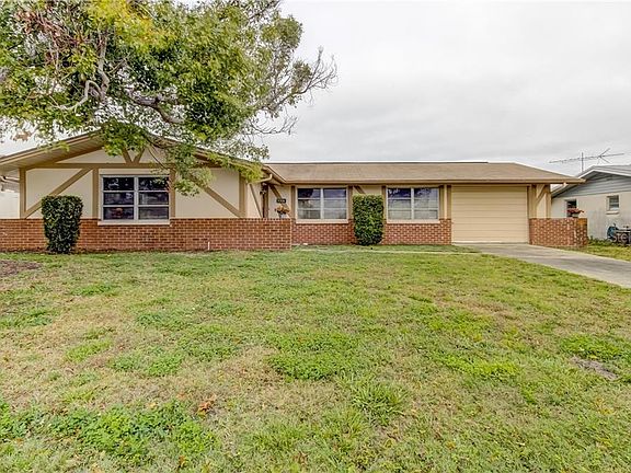 Welcome Home to Embassy Hills! Conveniently located, just east of US19 off Embassy Blvd one block to Robstown. This charming, well maintained, original 1975, MOVE IN READY, home features 1232 sf of living space with 2 bedroom, 2 bathroom with an oversized garage. This home will be a great first home or a winter home for friends from the north. Roof replaced in 2007, A/C replaced in 2001.This home has a 1-car oversized garage (19âw x 24âd) with room for a motorcycle, golf cart or other toys. The Garage also has laundry hookups and Washer & Dryer are included.The Kitchen has a large closet pantry and an eat-in counter area. The Dining Room & Family Room are off the Kitchen. Great area for entertaining. The Family Room leads to the Screen Porch through sliding glass doors.The Master Bedroom has a full bathroom with shower. Step out the sliders from the family room onto the screened porch for even larger entertaining area. No HOA fee, X flood zone, and conveniently located close to Gulf View Mall, Restaurants and Beaches. Youâll want to see this one! This home is all original 1975 and has only been used for 2-3 months a year for many years. A CBS Code is required and is provided with showing confirmation.