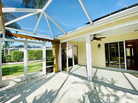 This home is an expanded "Hibiscus" model located in the Chatham neighborhood in The Villages. Gorgeous upgrades throughout the house including 7" crown molding; Custom built-in storage cabinets in studio bonus room; Designer 8x10' walk-in closet that was built as an addition to the home; floored attic storage with pulley system to aid in raising and lowering items; upgraded kitchen appliances; glass lanai with air conditioning that can be closed off or fully opened to incorporate screened porch area for entertaining larger groups; sky lights for added natural light; solar panels installed on roof in 2018 (equating to $35k in energy efficiency improvements and lower electric bills). Sell of the home includes a 1-year home warranty through AHS or similar company.