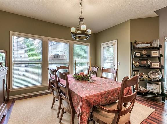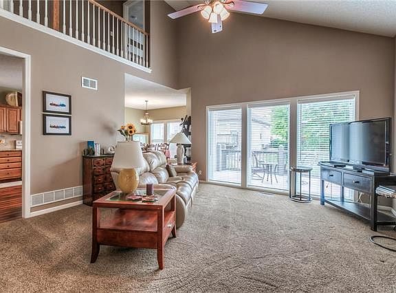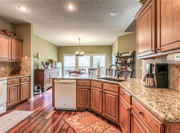 Fabulous townhome with many upgrades already done for you! Granite counters and breakfast bar in the spacious kitchen. Large dining area with lots of windows and door to the deck. Light and bright great room with vaulted ceiling and beautiful fireplace. Large bedrooms with great closet space. Master BR has private bath with double vanity, walk-in closet and shower. Nice deck overlooking a big yard. Full basement for lots of storage. Large garage. Great neighborhood and wonderful location with easy access to K-7.