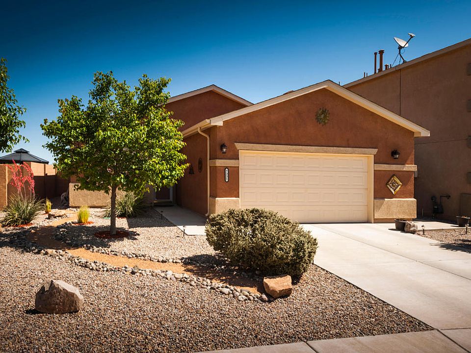 When you first drive up to this home you can see the pride in ownership, the yard is practically perfect and low maintaince. The home begins with 20'' tile in the entrance, your eye will then be drawn to the beautiful granite countertops and upgraded kitchen faucet. The kitchen also features 42'' Cabinets and a bar top that overlooks into the main living area. The upgrades and custom touches continue throughout the entire house: with new lights, flooring and paint thru all of the home. Each bedroom has a walk-in closet and the garage is truly finished and over-sized. The cherry on top is the inviting private backyard with views of the Sandias and all this in the Ventana Ranch Area. Call today for your private showing.