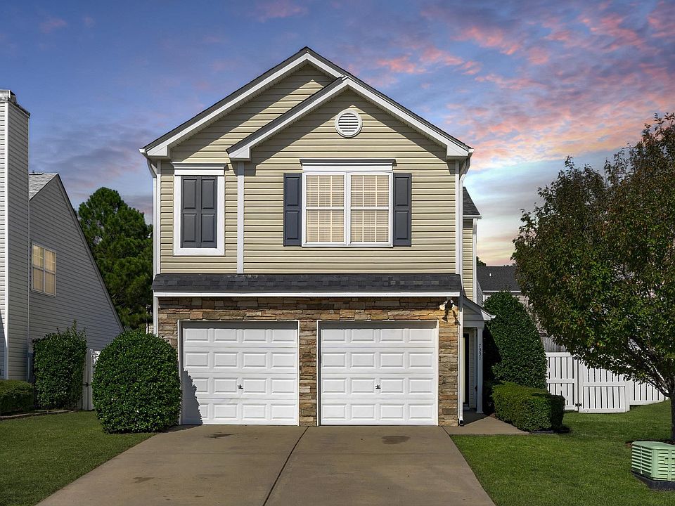 *Multiple offers received. Offer deadline: Sun Oct 8 by 6PM* Brighton 3 bedroom home with 2 stories, meticulously maintained and boasting an abundance of natural light that illuminates the expansive family room, seamlessly connecting to the inviting dining area and kitchen. Notable updates include a ROOF 2018 and HVAC 2021. The fenced backyard features a fruit and vegetable garden amid tasteful landscaping. The owner's suite impresses with dual walk-in closets and updated bathtub. The 2-car insulated garage is equipped with storage shelves and a storage nook. The main level, stairs, and upstairs hallways and bathrooms showcase resilient LVP flooring, complemented by plush carpeting in the bedrooms. Modernized light fixtures and kitchen appliances enhance the overall appeal of this charming residence. Situated in the sought-after North Raleigh area, this home enjoys proximity to Lowe's Foods, Planet Fitness, CVS pharmacy, and the shops and restaurants at Forestville Crossing Shopping Center. Low HOA! Make it yours just in time to host the holidays!