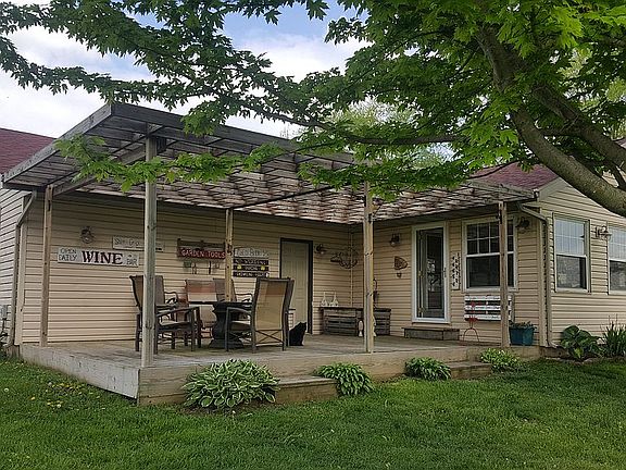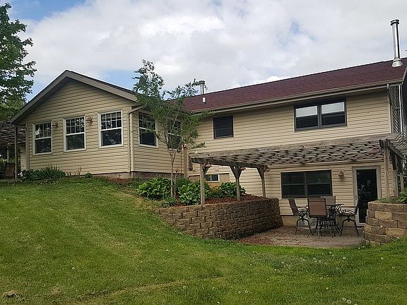 Ranch home on 5acres MOL. New roof in 2013, new central air 2015. Large 4 season sun porch with amazing views. Newer windows through out. Finished lower level with walk out, wood burner, 4 th bedroom or office, bonus room and kitchenette. 2 pergolas for entertaining. Updated kitchen and baths. 20 x 30 machine shed with cement floor, separate electric and RV outlet. 2 portable buildings stay, wood shed and potting shed/she shed. Tree house/hunting blind. Orchard trees and wooded walking path. Chicken coop with electric. This is a great property if you, garden, deer hunt or morel mushroom hunt.