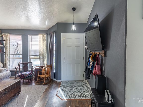 Check out this cute home in a great location in North Nampa! Darling Open floor plan with vaulted ceilings. LVP flooring in the main areas. 3 bedroom plus a den with french doors. The den has a closet so it could be a 4 th bedroom. Split bedroom floor plan. The kitchen features a breakfast bar, dishwasher, oven and pantry. The master suite has his and her closets, tile bathroom floor and tile surround in the tub/shower. Brand new a/c unit this year. Gas Furnace 2016. Gas Hot Water Heater new within last few years. Solar panels included. Roof is approximately 8 years old. Spacious fully fenced backyard with a storage shed and a fire pit. RV parking on the side of the home. Conveniently located to freeway access, shopping and so much more.