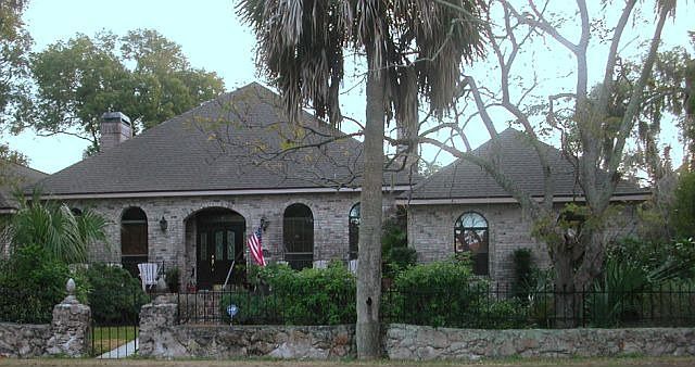 Rare opportunity! This majestic home sits up high, overlooking the beautiful Cotee River and is surrounded by a beautiful stone wall and gated. Situated on almost a half acre, this spacious and beautiful home has so much to offer. The open flowing floor plan greets you with a beautiful view of the stunning pavered pool area when you enter. A very special feature of this home is the easy in-law suite, a bonus room that can be a living room and bedroom with its own bath ensuite that can be closed off from the rest of the house (French doors divide it from the rest of the house). There are 7 sets of French doors in this home and so many other special features. Absolutely perfect for entertaining, the huge pool area is screened and has a privacy wall all round it. The 4th bedroom has French doors leading to a large pavered and screened porch. The cozy living room features a beautiful fireplace. Other great features include large open kitchen, lovely front porch, brick look exterior stucco, and large circular drive. This is a 4/3 with TWO bonus rooms. Riparian rights and dock are included. You will be proud to call this home. Sold"AS-IS"with right to inspect for sel