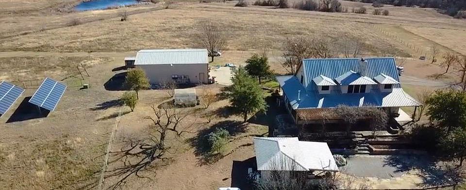 Live off the Grid! One of a Kind Ranch property w private electronic gated entry w keypad. Property sits on 77 rolling acres. Main home sits high on a hill w breathtaking views! Recent updates include Newer AC units, Fresh paint thru out, Kit has new Jenn Air Applcs with Side x Side SS fridge. Master w sitting area. Kit & LVNG w massive fireplace & wrap around eat in bar opens to Family Rm overlooking the pool, spa, Outdoor Living with full Kit & built in 36inch grill & Portuguese Pizza oven. Guest Casita w Lrg Bdrm, sitting area & bath, 2 sep Workshops, Barn, Greenhouse, Solar Powered Array. Heavily treed creek area. Perfect for hunting, livestock, equestrian center, 4x4 trails or get away SEE ATTACHED AERIALS