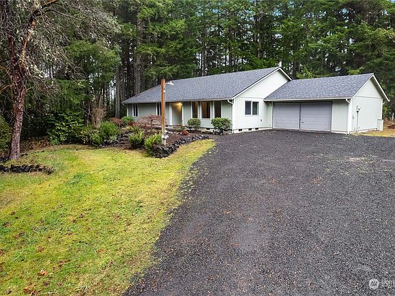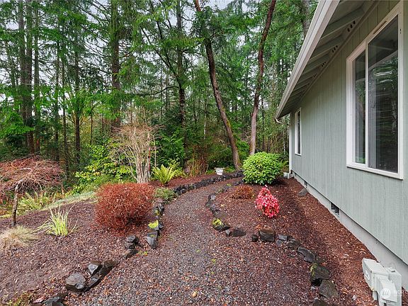Enjoy the peaceful life in this 1,920 SF home, offering the perfect blend of comfort and tranquility. Featuring a bright and open floor plan, this home includes 3 bedrooms, a versatile den, and 2 full baths. Spacious kitchen, complete with ample counter space and a convenient breakfast bar. Vaulted ceilings in the living and dining areas enhance the sense of space, while the cozy family room boasts a wood stove and sliding glass doors that open to a large, inviting deck - ideal for entertaining or relaxing. Nestled in a serene and private 4.9 acre setting, this property is located in the sought-after Steamboat Island community. Garden area & fruit trees. Perfect retreat for those seeking space, privacy, and natural beauty!