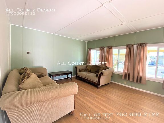 Spacious 2 Bedroom/2 Bath mobile home available for long term lease in the 55+ Tri Palm Estate Community. This community is for young seniors who like an active life style with focus on mingling and staying active. Variety of planned activities through the HOA. This home is located within walking distance to Tri Palm Country Golf club. Available partially furnished or unfurnished if desired. This home features newly installed hardwood laminate plank flooring with carpeted bedrooms. Brand new windows throughout. Central AC with swamp cooler for energy efficiency. Large yard with shed and exterior laundry room with workbench. 3 parking spots and low maintenance desertscape for easy upkeep. HOA amenities include club house, golf course, water activities, park and much much more. HOA fees are included in the rent. Tenant to pay all utilities. All applicants must pass a comprehensive background screening including income verification, credit check, criminal background check, and landlord reference check. Renter's liability insurance is required. Call for an appointment today!!. If you see this home advertised online for less than the rental amount quoted here, the ad is a SCAM. We are the only authorized agent for this property. Please email us a link to any bogus or fraudulent ads so we can report it to the appropriate authorities. Please do NOT send money to anyone who offers keys in exchange for a deposit check - especially if they are out of state. When in doubt, please feel free to contact us.