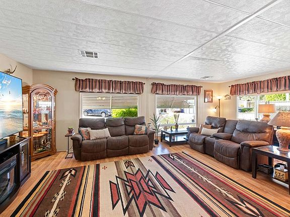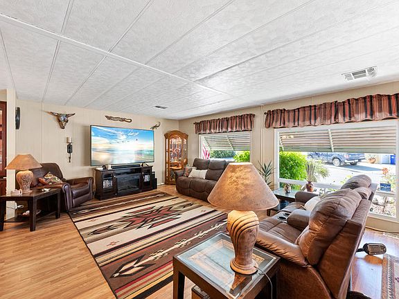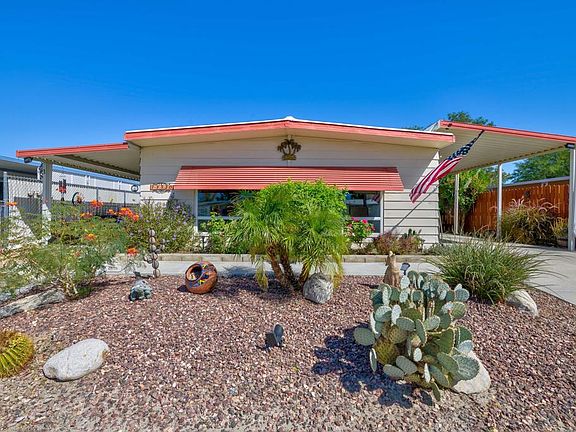 Welcome to your forever home! Nestled in a tranquil setting, this spacious 2 bedroom, 2 bath residence has undergone extensive renovations. It offers a host of functional upgrades, including an AC rebuild, stylish bathroom vanities, and energy-efficient LED lighting. The highlight is the newly remodeled kitchen with an open floor plan, dazzling quartz island housing a sleek gas range, state-of-the-art appliances, a spacious walk-in pantry, & soft close cabinetry. The primary bedroom features plush new carpeting. Both baths shine with fresh vanities & a new Koehler toilets. Year-round comfort is assured with the 2018 installed double-paned windows & roll-up blinds in the light & bright living room. Additional upgrades include a 2019 installed water heater and a new washer with a dryer. Golf Cart Included. Storage is a breeze with the brand-new Tuff Shed & Golf Cart Shed, perfect for stowing all the extras. The roof was resealed in 2021, ensuring peace of mind. The low-maintenance desert scape & the presence of citrus trees provide both beauty & shade, making this a true oasis in the desert. Tri-Palms Estates, just north of Palm Desert, is an active 55+ community where you own the land. The community features a clubhouse, inviting pools/spas, shuffleboard, tennis, & pickleball courts, as well as a popular restaurant. For golf enthusiasts, homeowners enjoy unlimited play on both a regulation 18-hole & a 9-hole par 3 course. This is the lifestyle you've been waiting for
