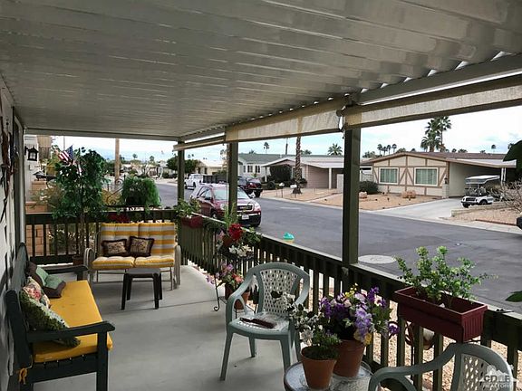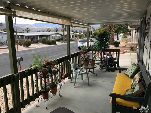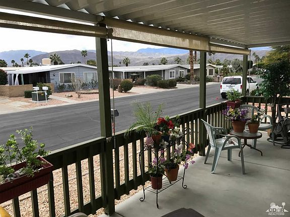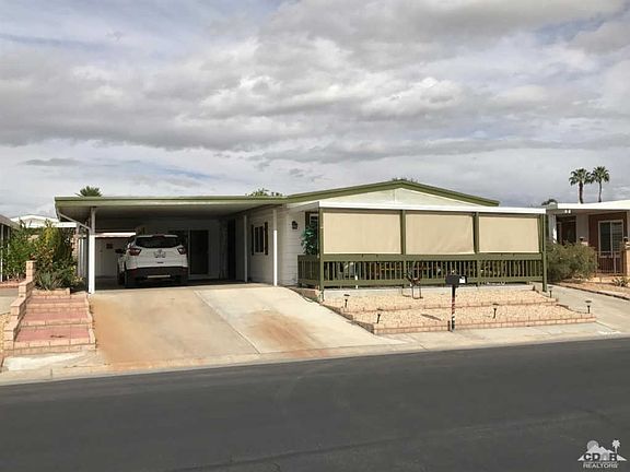 Wow, YOU OWN THE LAND at Palm Desert Greens CC. Since purchasing the home last year, the owner has added a beautiful front covered patio to take advantage of the magnificent mountain views and also added dual pane sliders to the front bedroom and den (or third bedroom). The master suite is located at the back of the home for extra privacy. The carport can handle two cars side by side. Palm Desert Greens Country Club is a 55+ Golf Course Community where owners enjoy free golf for two (on the deed). Amenities also include a guard at the gate, swimming pools and spas, tennis courts, fitness center, social clubs and Clubhouse with restaurant and bar, all for a low fee of $267 a month. HOA fees also include trash pick-up and some cable TV.