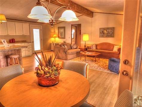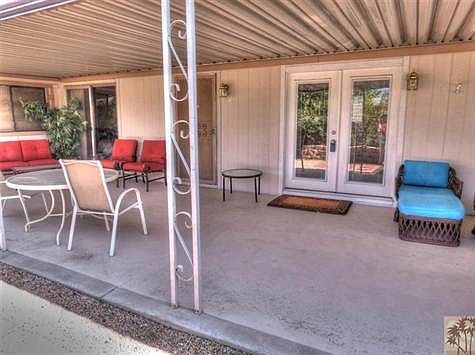 Charming home with two master suites! Perfectly situated on a quiet internal street, this property has side by side parking plus a lovely patio for enjoying our great desert weather. French doors open to the spacious great room with beautiful laminate floors and an inviting galley kitchen. Entertaining here will be a pleasure! Sliding doors to the patio accent one master suite with the nicely updated bathroom. The opposite bedroom and bath offers privacy to guests. The home is furnished plus there is a newer refrigerator and washer and dryer. Seasonal or full time, this home offers it all!!! Brokered And Advertised By: Realty Services/The La Donna Keaton Team Listing Agent: Dale Patrick Vinson