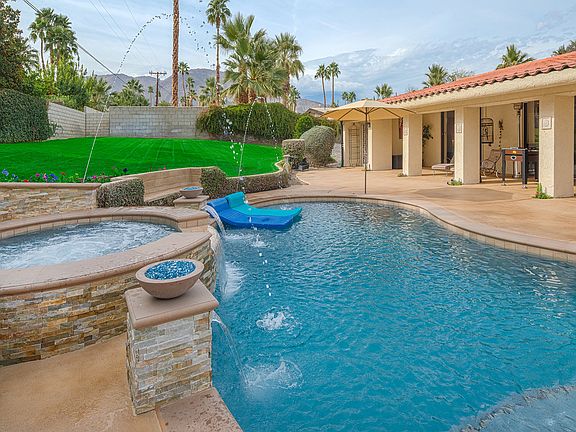Recently upgraded with all of the luxury and entertainment features you could imagine, this spectacular single level private home in the Shadow Mountain area of south Palm Desert is your Desert Paradise Vacation. (Please note the location noted on the map is approximate and not exact for security purposes - if you go to the location noted you will not find this vacation rental) Highlights: o Steps away from the many luxurious shopping and dining options on El Paseo o Short walk to a round of golf or tennis match at the Shadow Mountain Country Club o Newly refinished heatable pool with mini pebble finish, state-of-the-art LED colored lighting, 4 stylish streaming deck jets and 2 fire pillars o Newly constructed in ground spa with cascading water fall and resort quality 8 jet configuration w 2 dedicated pumps to ensure just the right amount of pressure o Newly constructed fire pit with fire glass, spacious surrounding seating and mountain and starlight views o Newly constructed outdoor BBQ with built-in 36? AOG by Firemagic grill, side burner, sink, cabinet, drawers and surrounding raised countertop with seating for up to 8 o New fusbol table and pool basketball o Outdoor dining table seating up to 6, new commercial grade misting system, and 2 new large patio heaters for evening dining o New Klipsch 85 watt patio speakers o New Brunswick pool table o State of the art surround sound home theatre system in Living Room and Master Bedroom o Home office with docking station and laser printer/fax/copier/scanner Other Features of this spectactular property include: Expansive and Charming Living and Dining Area with: o State of the art Home Theatre System o 52? HD flat screen TV and 5 speaker surround sound system and subwoofer o Multi room DVR, Blu Ray Player, CD/DVD changer, and Iphone dock. This is a vacation rental. The daily, weekly and monthly rates vary by season. Please see https www.vrbo.com/709141 for details.