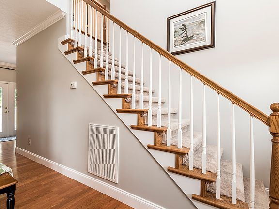 Charming 3BR/2.5BA home with a large bonus room that could be used as a 4th bedroom. Enjoy your coffee on the front wrap around porch. Kitchen features: New Granite countertops and under mount sink (2018), Island, walk-in Pantry & New tile Backsplash (2018), New appliances (2018). LR opens to Kitchen & has stacked stone gas FP, Formal DR & Eat-in Kitchen. Hardwood floors throughout main level and newer carpet (2016) upstairs. Abundant Storage & Natural light. Spacious MBR &w/Jacuzzi Tub. Corner lot. New landscaping (2016). House pressure washed (2018), walk in crawl space, deck refinished (2018), gas heat in winter. Gas grill hookup (2016), New paint throughout house and garage (2018). Meticulously maintained with records and files of upgrades.