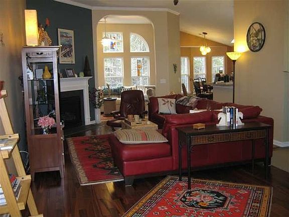 Immaculate 3BR/2BA with 12'x25' Bonus Room, Sun Room, screened porch and deck. Hardwood throughout foyer, dining and great room. Fireplace, crown molding and ceiling fan in great room. 15'x18' master suite with tray ceiling. 1/3 acre site backing to woods and conservation area. HOA maintains front and side yard. Back yard is natural with garden area and perfect for bird watchers! Community clubhouse with planned activities, pool, tennis, gated entrance and garbage pickup included. On sit...