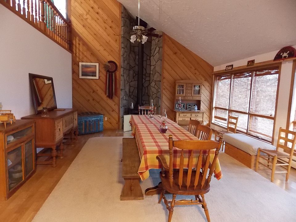 Incredible Price for this Massive Home on 5 acres! Wonderful design provides energy efficiency through passive solar system. Spacious great room with fireplace. Kitchen boasts wood cabinets, granite countertops, high quality appliances, and bright natural lighting. Through an arched doorway the Breakfast area leads way to vaulted Living room that just magnificent with its wood burning stove. Modern Open stairs lead the way to the vaulted sitting area outside the master suite with double closets, walk-out private balcony and master bath with separate shower from tub and double vanity. Main floor features 2 nice bedrooms with a hall bath and a large deck off the back of the home. In the lower level you will find a wet-bar, wood stove, and more living space that open for your interpretation. Another bedroom and office space in the lower level are connected through a hall bath and near the Laundry Room. Huge Detached garage. Don't Miss out on the Acreage, Space & Design of this Home!