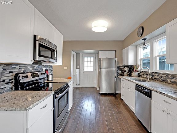 Endearing craftsman bungalow sighted in bustling Arbor Lodge is truly move-in ready. Thoughtfully remodeled while retaining charm. Light & bright with abundant newer windows. Updated mechanicals. Rare Great Room layout creates a spacious feel along w/two generously sized bedrooms. Lower level has bonus space that is ideal for office/movies/games/guests, large utility room & extra storage. Garage + petite yard for outdoor fun. Stroll to parks, shopping & amenities. (85 Walk Score, 98 Bike Score)