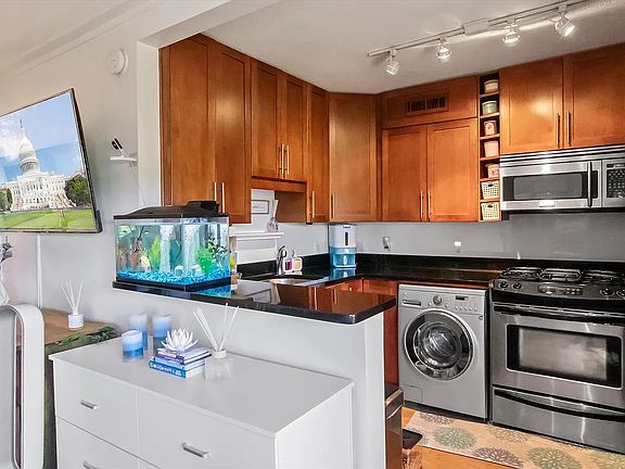 Welcome to this beautifully updated 8th-floor studio unit and perfect for you seeking affordability, comfort, and convenience in one unbeatable package. This pet-friendly residence is flooded with natural light and features stunning hardwood flooring throughout, along with stylish upgrades that make city living effortless. The open-concept kitchen is upgraded with 42-inch maple cherry-finish cabinets, modern countertops, stainless steel appliances, and a breakfast counter that is perfect for everyday meals or entertaining guests. Enjoy the ease of an in-unit washer/dryer combo, with common laundry available just outside the unit. Storage won't be a problem with a huge walk-in closet, an extra closet, and even optional additional storage available for only $50/month. The assigned parking spot is included, and EV charging stations are also available in the community. The updated bathroom features new 2024 light fixtures and a refreshed shower space. Updated window blinds, screens, and filter system add to the move-in ready appeal. Condo fee includes all utilities: water, electricity, gas, trash, lawn care, exterior & building maintenance, and access to amenities galore: On-site reception/front office 24-hour security cameras Tennis court Barbecue/picnic area Community garden Laundry room Unbeatable location that is right across from the K6 Metro bus station and walking distance to the upcoming Purple Line (2027). Minutes from downtown Takoma Park, restaurants, shops, and Langley Park transit hub. Quick commute to the University of Maryland, Catholic University, and other major employment and education centers. Recreational options abound nearby with Sligo Creek Park, local museums, galleries, and cultural attractions right around the corner. This unit is the perfect combination of style, practicality, and accessibility. Utilites included except for internet and cable.